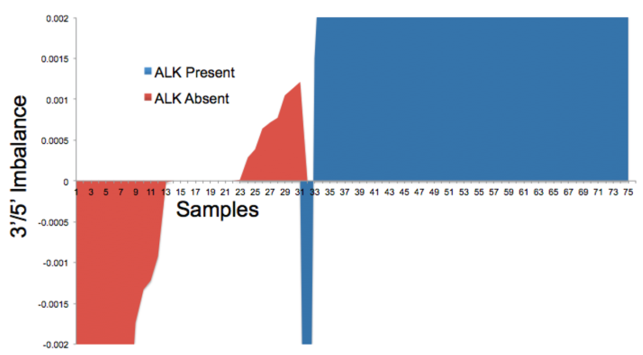 A 3'/5' Imbalance value of 0.025 or greater indicates the likely presence of an ALK fusion.